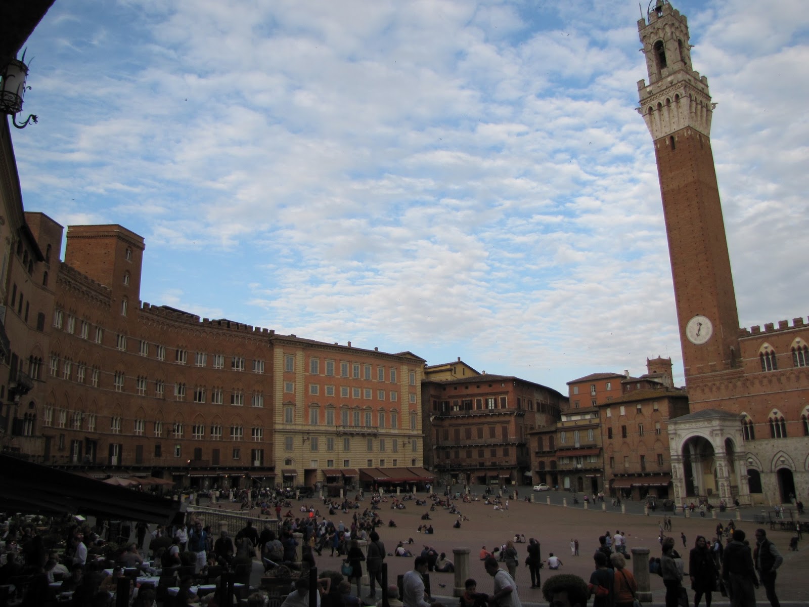 Ve Siena'ya doğru yola koyulduk. Bu gece Siena'da kalacaktık. Otele eşyalarımızı yerleştirdik. Ardındna şehrin en ünlü meydanına, Piazza del Campo, gidip yemeğimizi yedik ve R.Madrid-B.Dortmund maçını izledik. Şimdiye kadar gördüğüm meydanlardan çok farklı bir meydan idi, yataydı. Ve şimdiye kadar gördüğüm en ilginç Duomo da bu şehirdeydi; siyah beyaz renkte bir dış cephesi vardı.